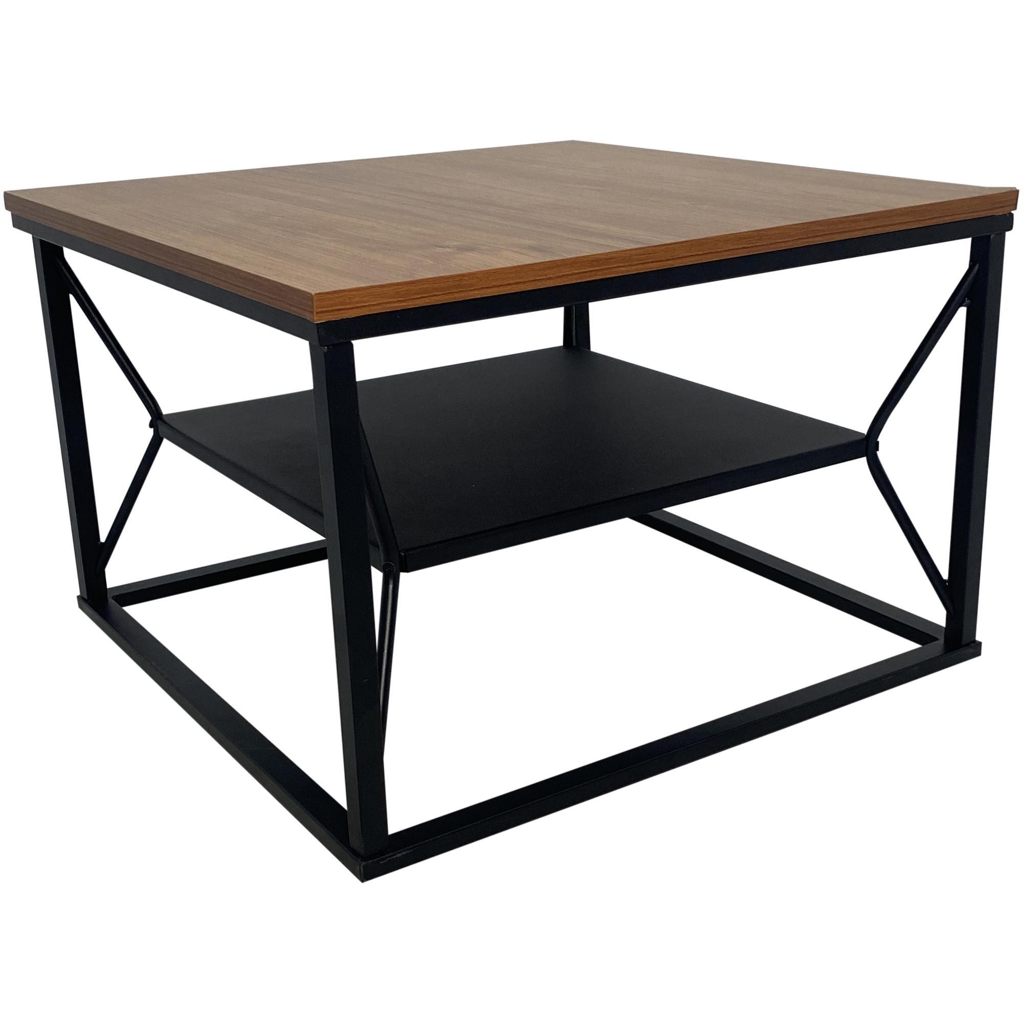 Mesa de centro cuadrada en moderno diseño industrial. Gran mezcla de materiales de madera y metal. Elegante y expresiva. Dos prácticos estantes para obtener espacio eficiente. Soporte seguro gracias a la robusta estructura de metal. Puntos antideslizantes en las patas protegen el suelo y el metal de arañazos antiestéticos